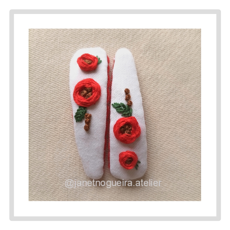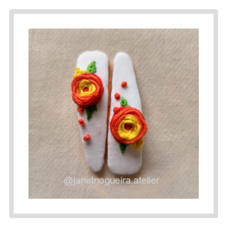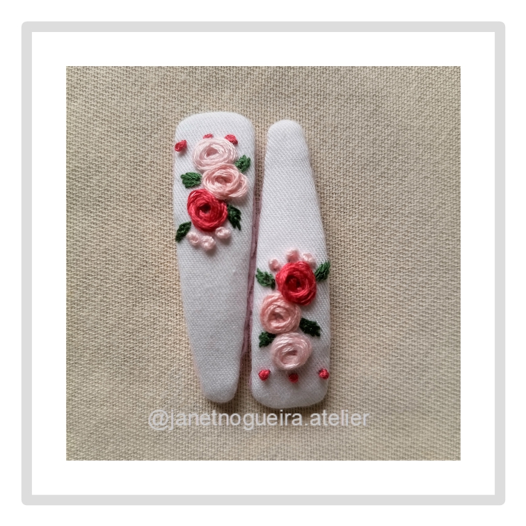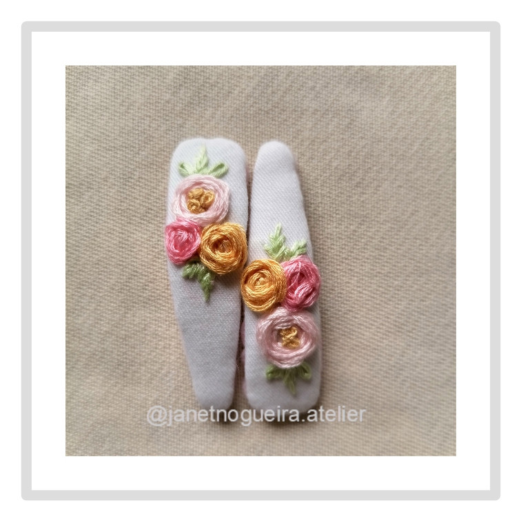 Ganchos de flores bordados (8cm) 5,50 € Desconto de %. Partilhar Flor Alfazema Branca Bela Emília Boca de Dragão Bouquet de Rosas Jacinto Verde Peónias Rosa e Bege Ranúnculo Laranja Ranúnculos Vermelhos Alfazema e Rosas Comprar Contactar Ganchos de cabelo bordados à mão com 8cm. O complemento delicado para o cabelo da sua menina. Marca Janet Nogueira Atelier Tags ganchos bordadosganchos de cabeloacessório de cabeloacessório de criança Características