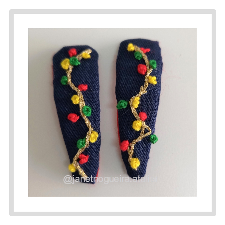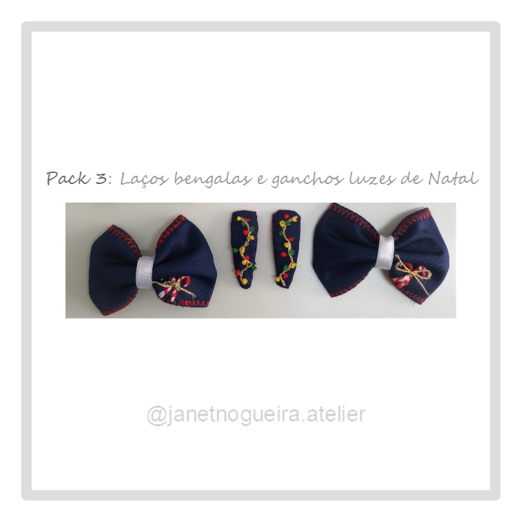 Laços e ganchos de Natal 2022 9,50 € Desconto de %. Partilhar pack 1- Laços azevinho e ganchos bengala 2- Laços bolas e ganchos pinheiro 3- Laços bengalas e ganchos luzes de Natal Comprar Contactar 1 unidades em stock Packs únicos de acessórios para o cabelo das meninas para este natal. Pack com 2 laços de 8 cm com prendedor bico de pato e dois ganchos clip de 5cm, feitos en sarja azul e bordados á mão. Marca Janet Nogueira Atelier Tags Laçosganchoslaços bordadosganchos bordadosacessório de cabeloacessório de cerimónia