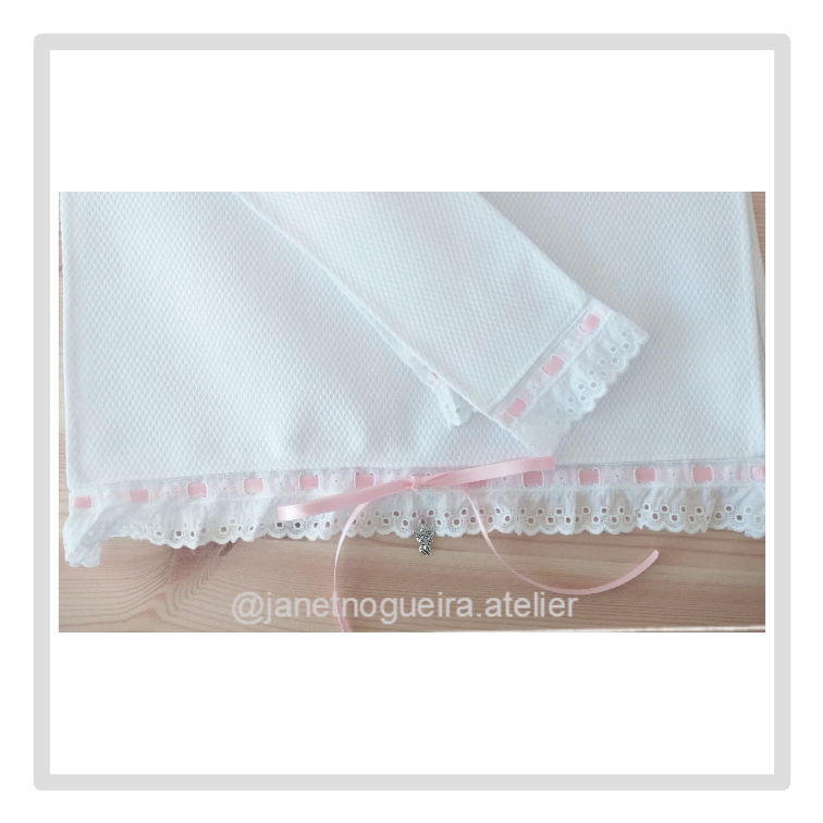 Conjunto de toalha e laço para vela em piquet 100% algodão branco.