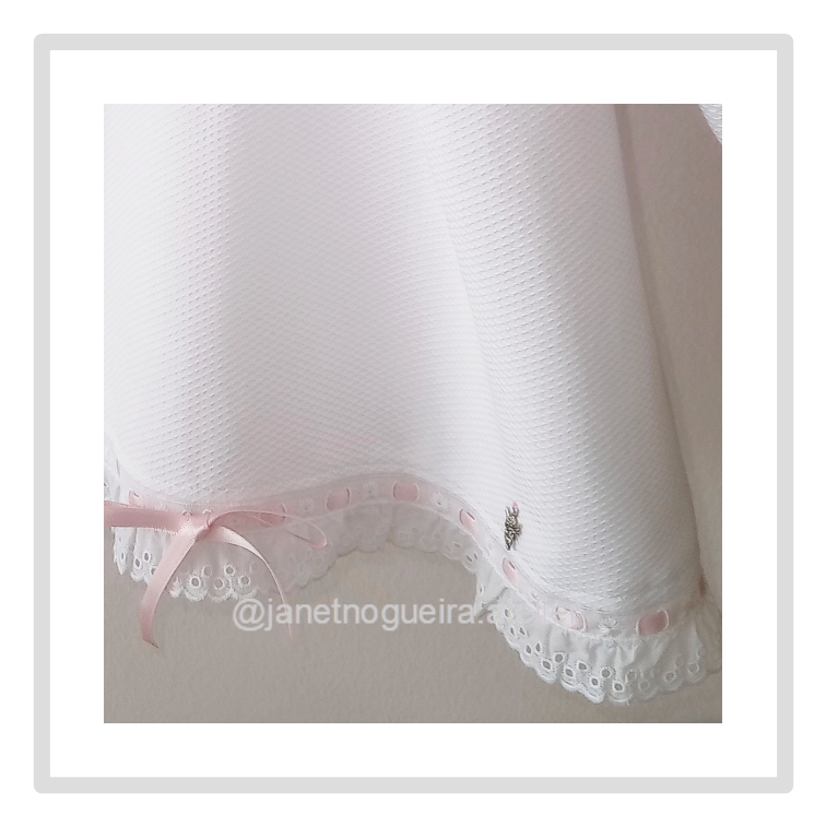 Passa-fita bordada na bainha. Pode alterar a cor da fita de cetim.(ver opções de cor nas imagens)