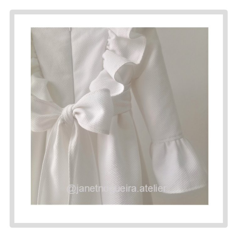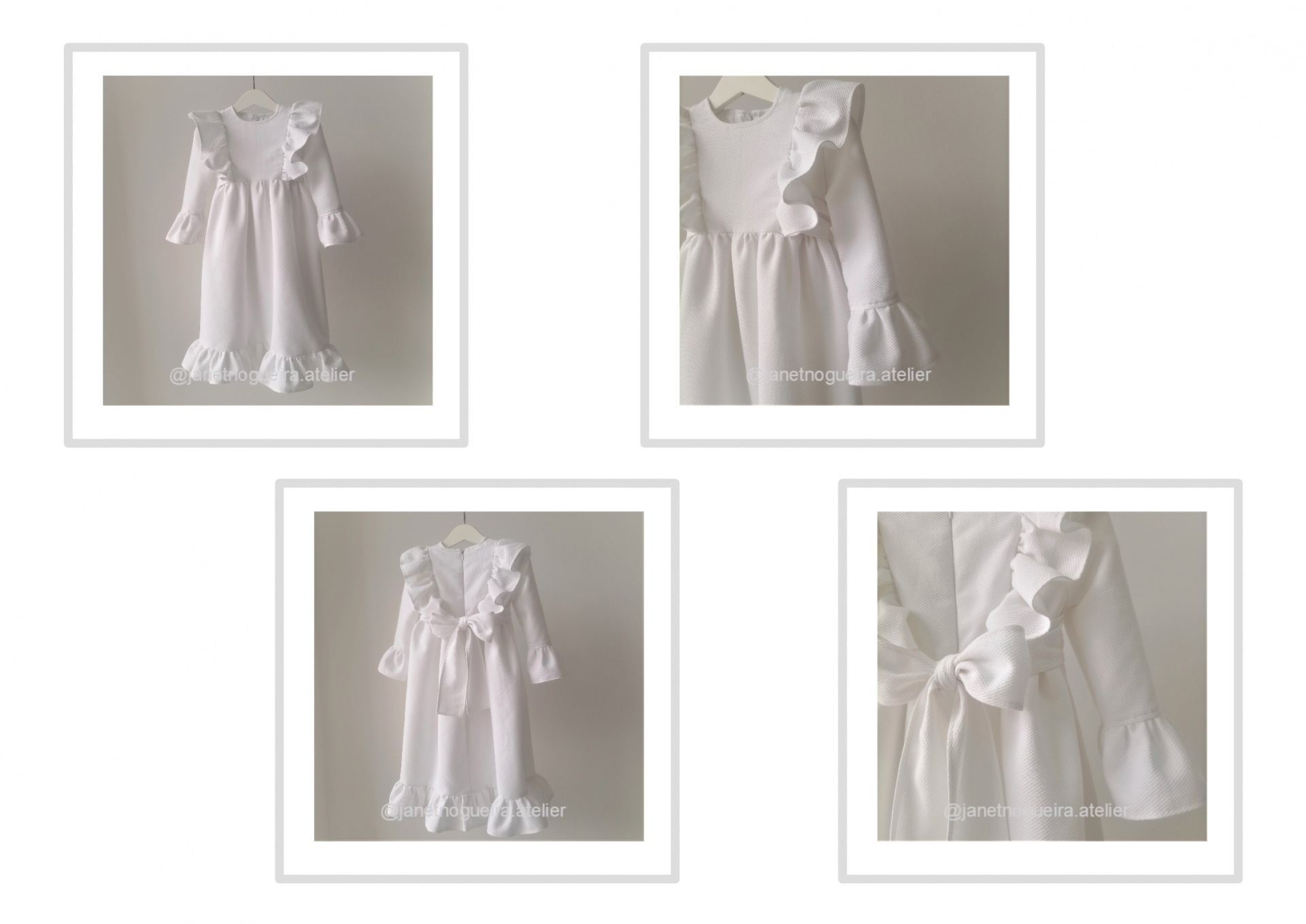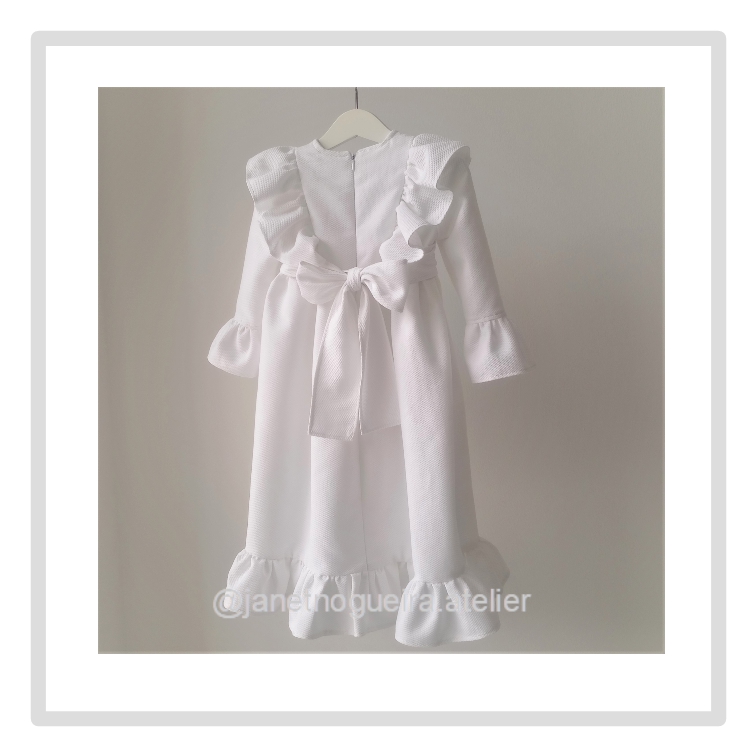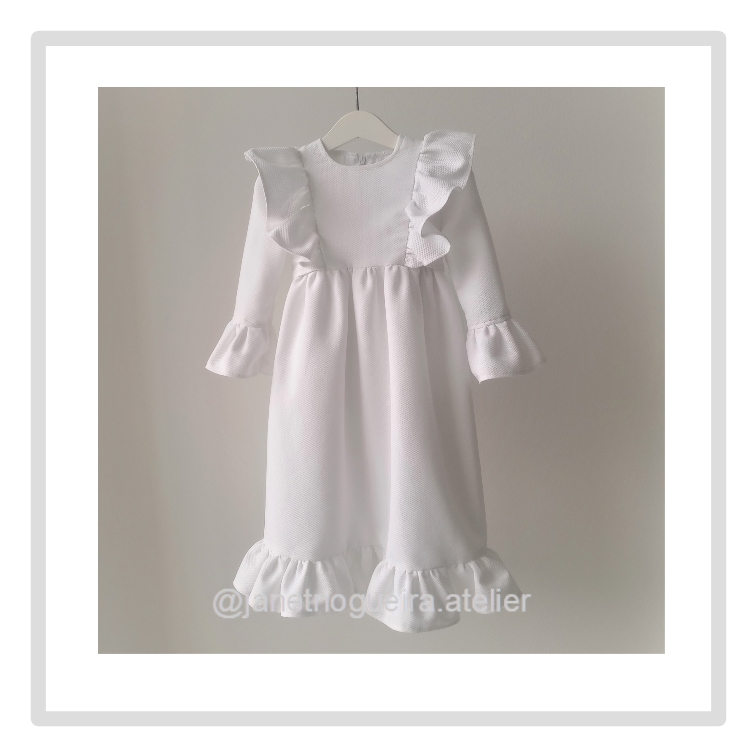 Vestido mídi longo. Ideal para a 1ª comunhão em dias mais frescos.